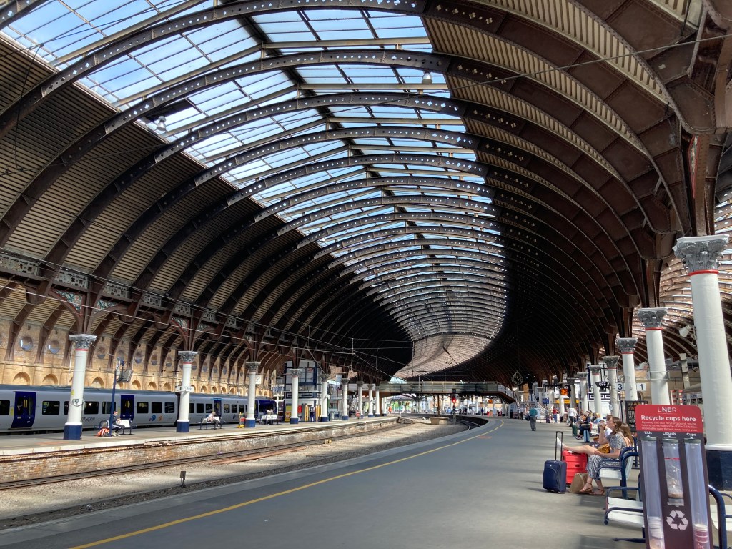 While I’m still grumbling about her (but, naturally, not actually asking her to shut up) my bacon roll and coffee arrives. The coffee actually isn’t bad. The bacon roll has all the flavour and texture that I would expect from a microwaved bacon roll – including being lethally hot. It all fills a hole and fulfils its’ main purpose: giving me an excuse to take my mask off. I then forget to put it back on, and once I realise, I guiltily check to see if anyone had noticed. No-one challenges me about it (not even Fog-Horn Woman opposite) and we get to York station without incident.