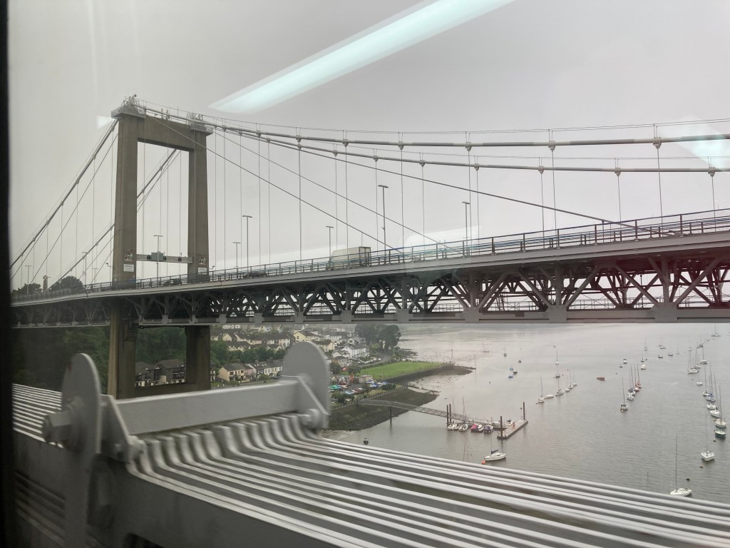 As we head across the Tamar into Cornwall, it starts to rain. We cross one of my favourite bridges (the Brunel Rail Bridge) which gives an excellent view of the much less inspiring road bridge.