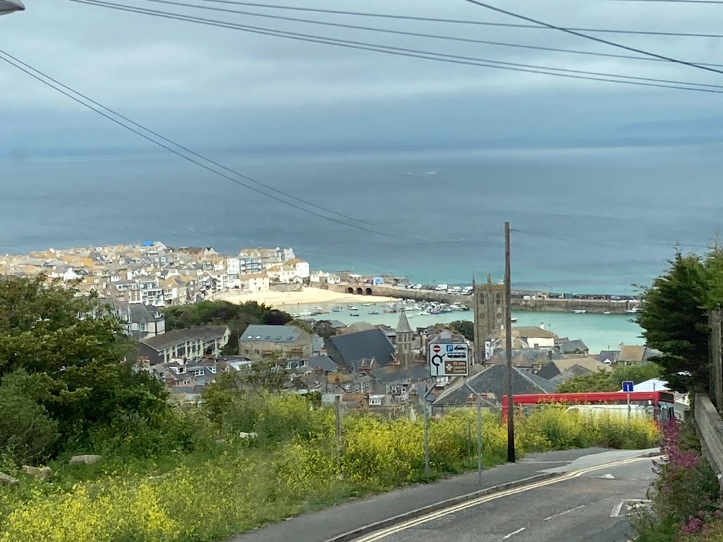 At St Erth, my suspicions are found to be true and I need to use Bus Replacement Service for the last stage of the trip. The reason is now clear – the G7 conference in Carbis Bay which happens to be right beside St Ives where I will be staying. As I approach the double decker bus, there are 6 staff hanging around outside and I am invited to sit anywhere – or to drive if I wish! I decline the kind offer and take the front seat upstairs. I’m the only passenger as the bus heads to St Ives.