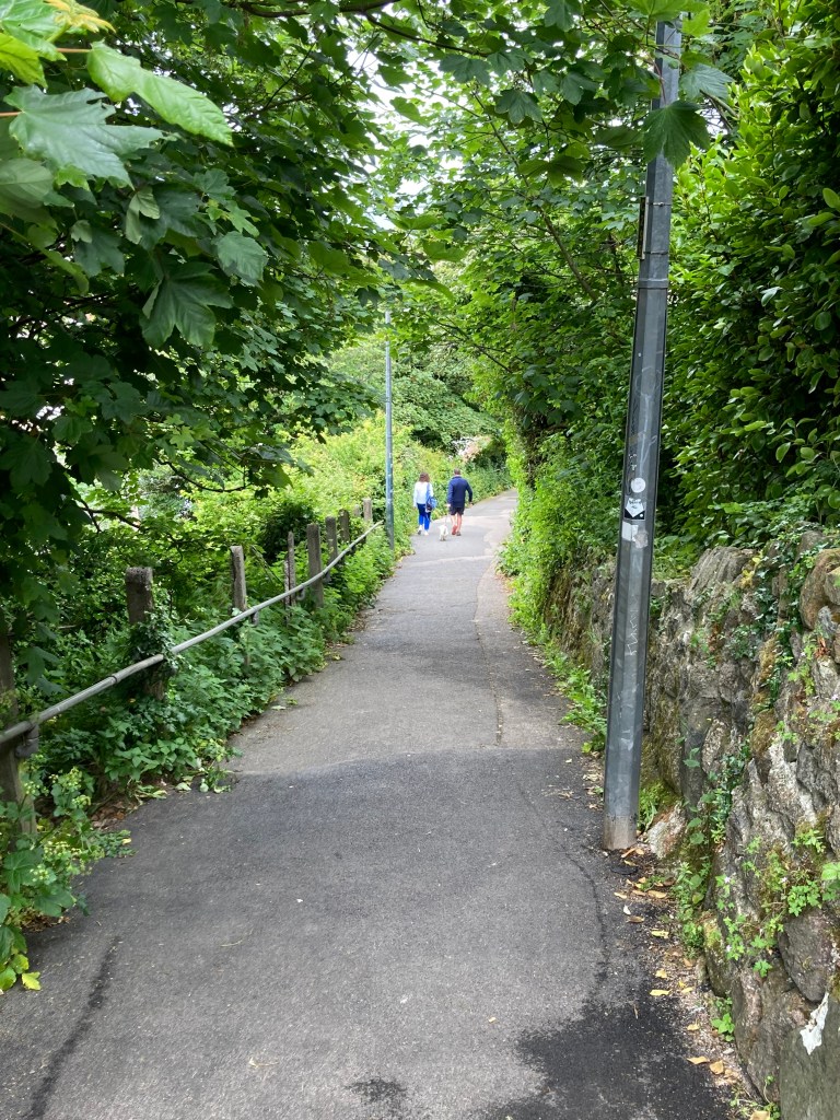 Suitably sustained, I head up some very steep roads to find my overnight accommodation at The Nook. I get inside to find 7 men sat around chatting. They all have that air of being police so I suspect they’re here for the G7. I naturally don’t ask. I also don’t ask why none of them are wearing masks. I do ask where the owners are. They have no idea. In the end, I give up and phone them and they give me a pass code for the key safe which contains my room key. I terminated the call and then checked my thesaurus for the definition of impersonal. Yes, there it is halfway down: The Nook. Now the advantage of this place over the last pace I stayed is that they are providing breakfast. I head up to my room to find a lovely note telling me that they have decided not to provide breakfasts at the moment. I check around to see where my rebate is for this decision, but instead they’ve left me a tote bag, some apple juice and some crackers.
