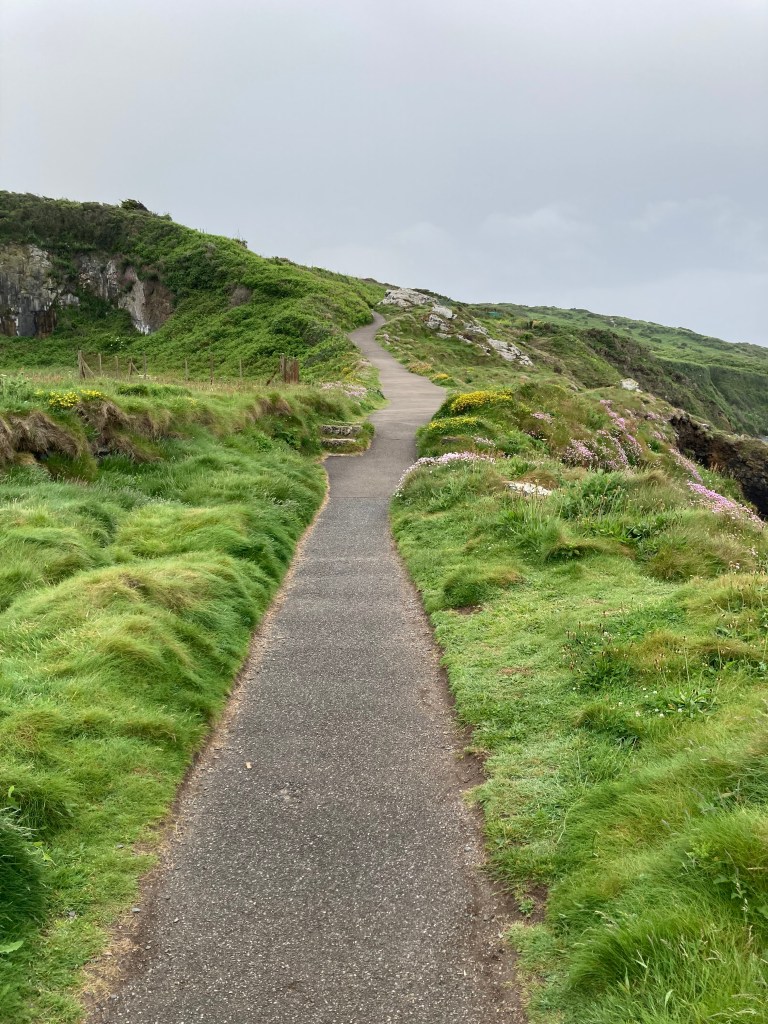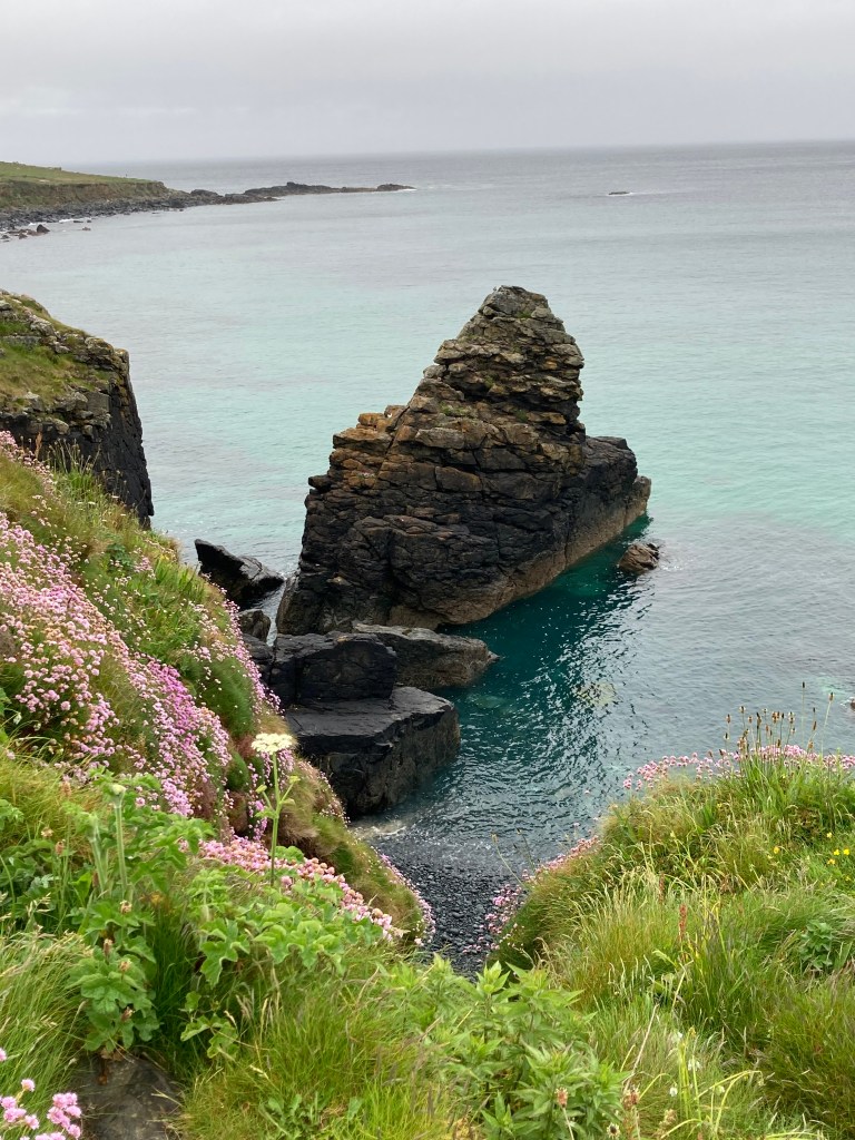 As I get to the last headland I can see that the path has two routes ahead, both of which have people on them. Good lord, it’s rush hour on the South West Coast Path. Distracted by them, I miss my footing and feel a sharp wrench go up one hamstring and twist my ankle. Luckily, I’m wearing boots, so no damage is done and after a bit of massage, the hamstring clears. Cursing the piskies I head on up the bluff.