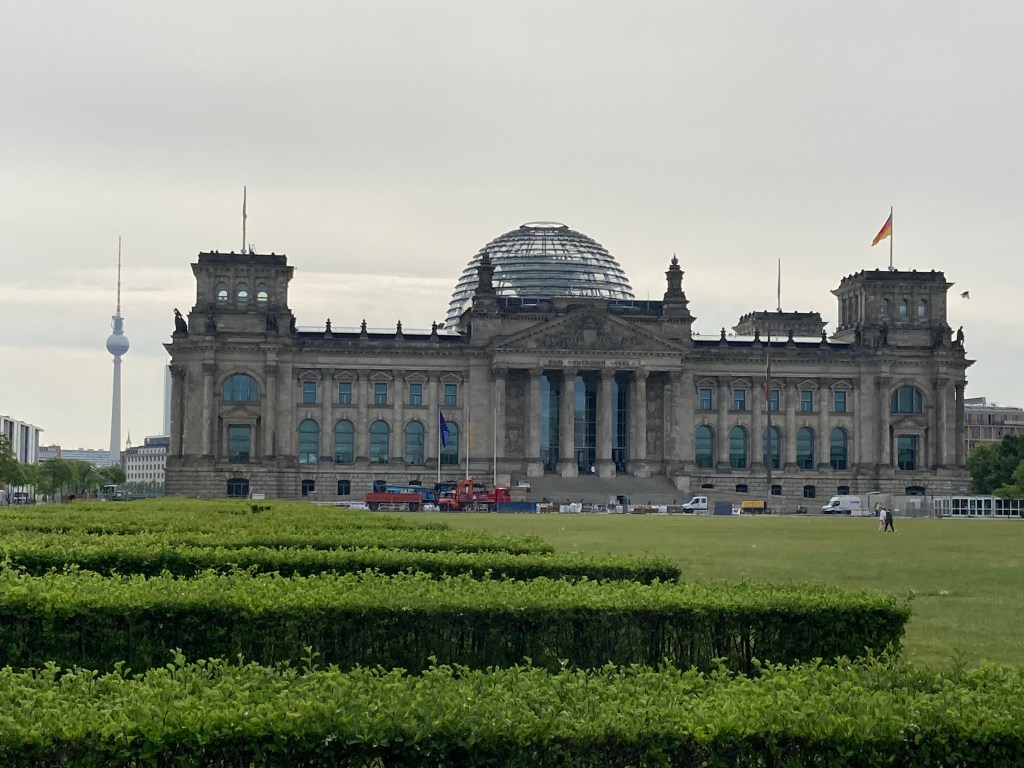 Entry to the Reichstag is free – but not free of a security check, so I head through with a crowd of people and head up. Masks are on and we get audio guides as we step out onto the Reichstag roof.