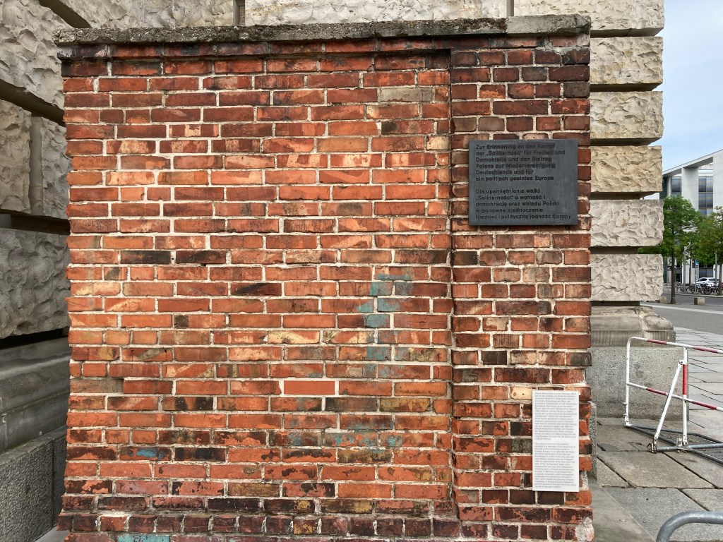 I have a roam around the outside of the Reichstag. Now, I’m sort of expecting there to be the remains of a bloody great wall around here somewhere, but there’s nothing to be seen. Oh wait, is this it?