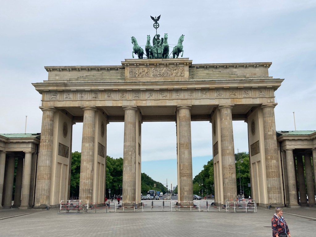 Apparently, there is a line of different colour bricks to show where the Berlin Wall used to be. I can’t find it, but I do find the Brandenburg Gate.
