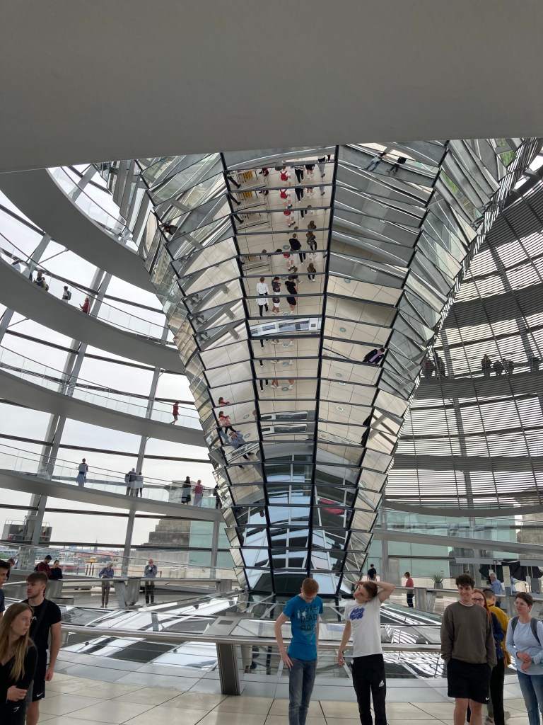 The dome is am amazing bit of architecture. It clearly doesn’t match the architecture around it, but somehow it works. Inside the dome is a curving ramp that takes you to the top and a huge mirrored cone in the centre. The audio guide is clever enough that it senses where you are, so if you walk on too far, it stops and switches to the next segment. I try to fool it by walking back down … clearly this has been tried before and it happily copes.