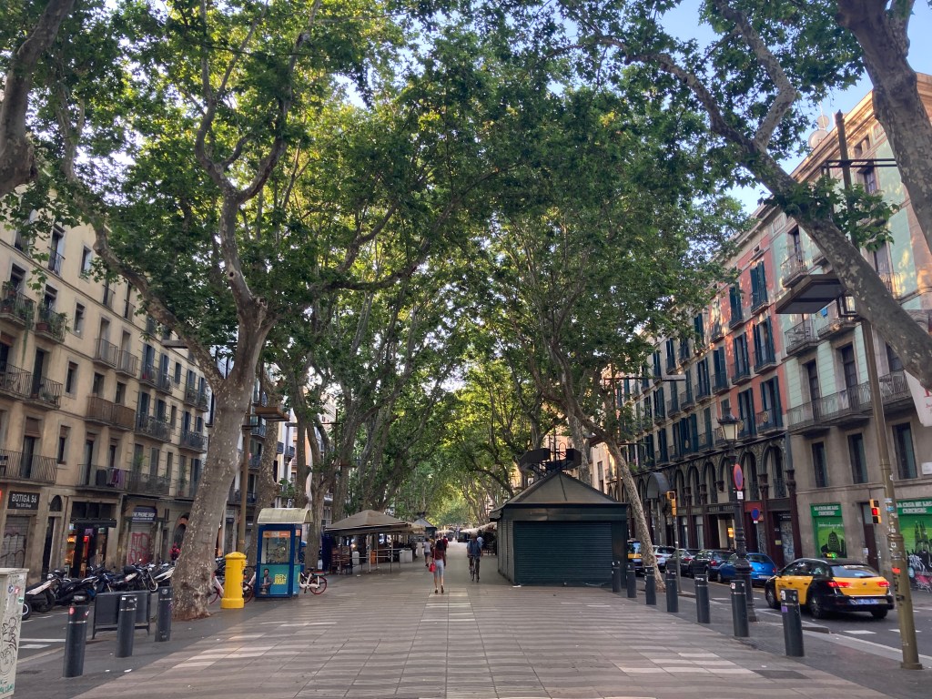 I head out just after 07:00. It’s going to get over 30 degrees today, but my concerns about security means I’m wearing jeans rather than shorts and all my documents are in my backpack. I have what can best be described as a death grip on it. Outside, it hasn’t heated up yet and Las Ramblas is a completely different place.